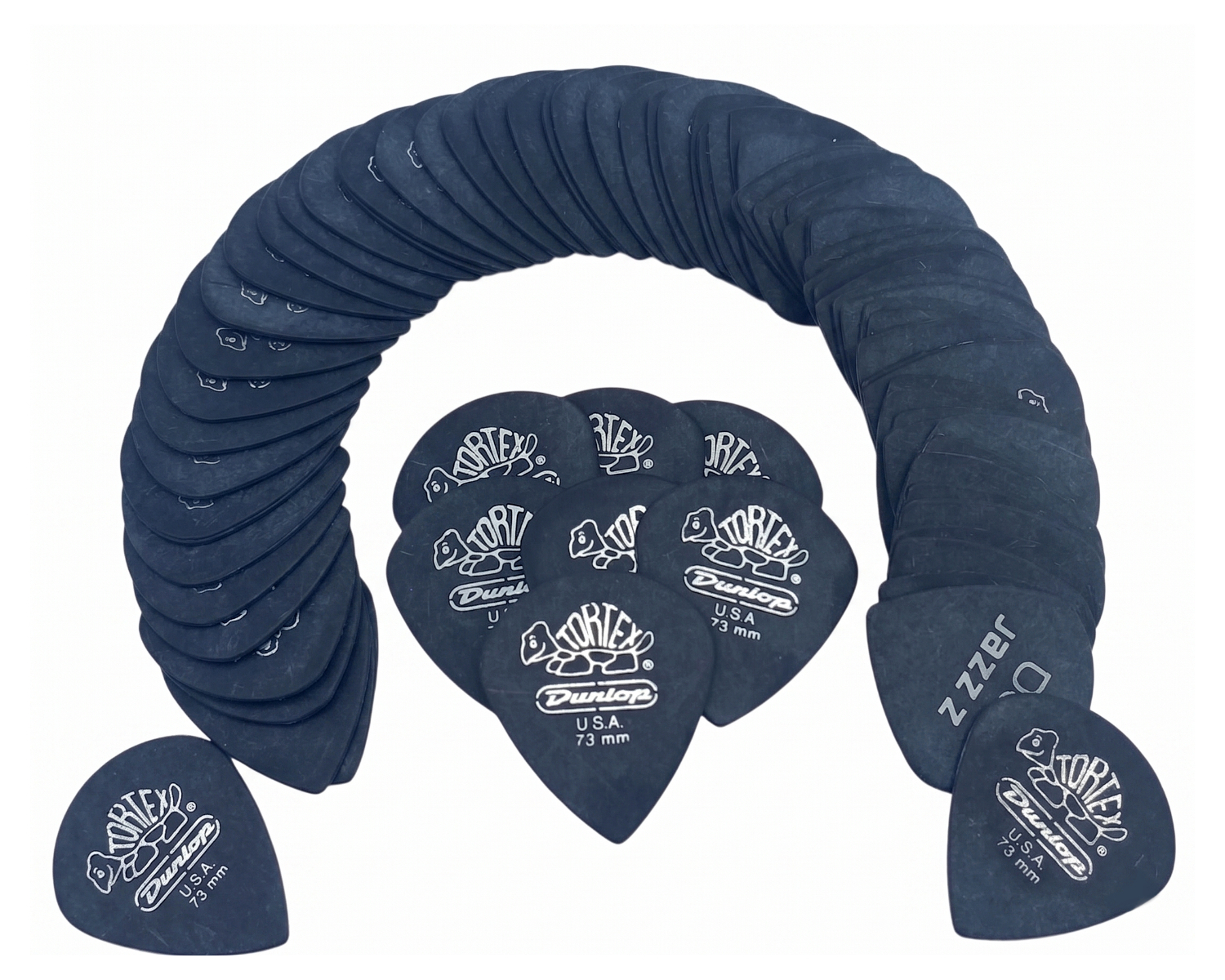 Kit com 72 palhetas Dunlop Tortex Jazz III 0,73 mm modelo 482R na cor preta, com formato compacto e ponta aguda, proporcionando maior precisão e definição nos ataques.