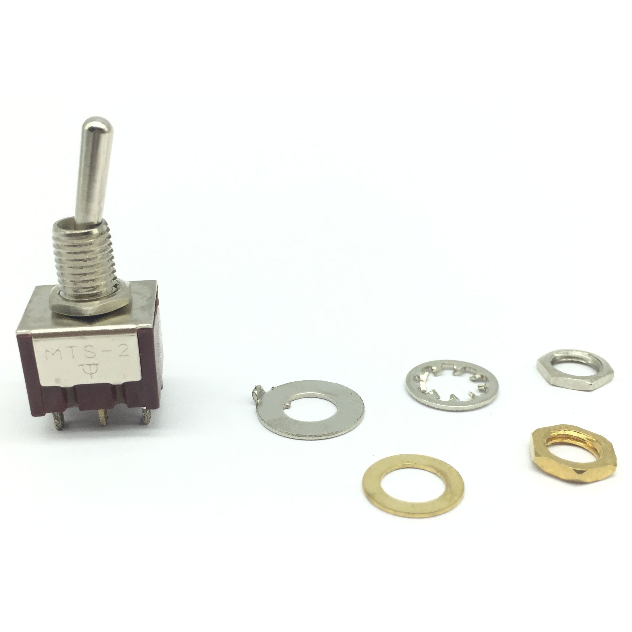 Descrição: Chave Seletora Mini de 2 posições para instrumentos, ideal para defasar humbuckers, fase-in/fase-out e ligações em série/paralelo, com rosca M6.0-0.75P.