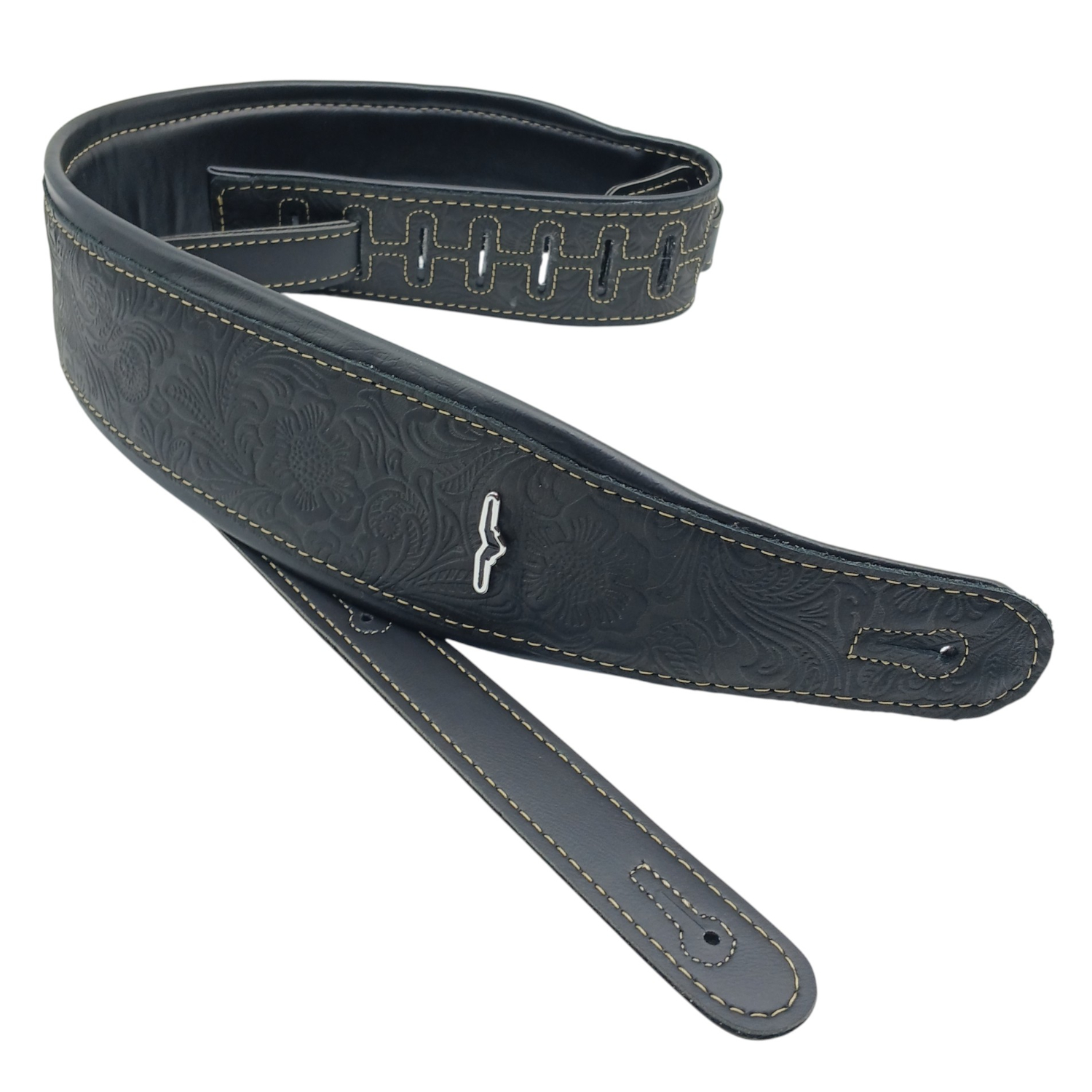 Correia de Couro Luxo Floral Preta – CCF (8 cm)