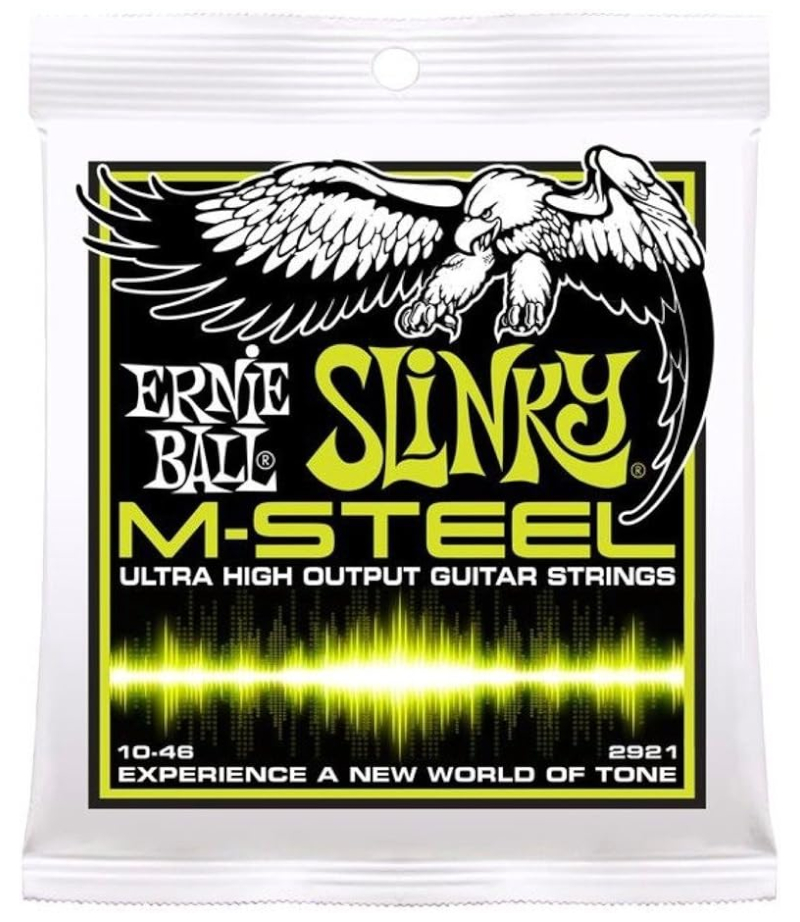 A Ernie Ball M Steel possui cordas encapadas feitas com liga de cobalto patenteada, enrolada sobre um fio hexagonal de Maraging Steel. Como resultado, as cordas produzem um som mais cheio e rico de graves. As cordas lisas da Ernie Ball 010 guitarra, são feitas de aço temperado que garante maior resistência. Possui também um reforço de aço no enrolamento das bolinhas que mantém a afinação por mais tempo em comparação às cordas tradicionais.