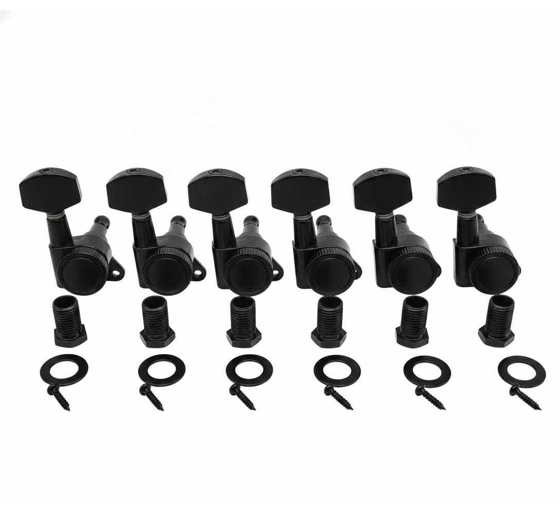 Jogo de Tarraxas para Guitarra com Trava 6 em Linha Preta – MXP Q400BK