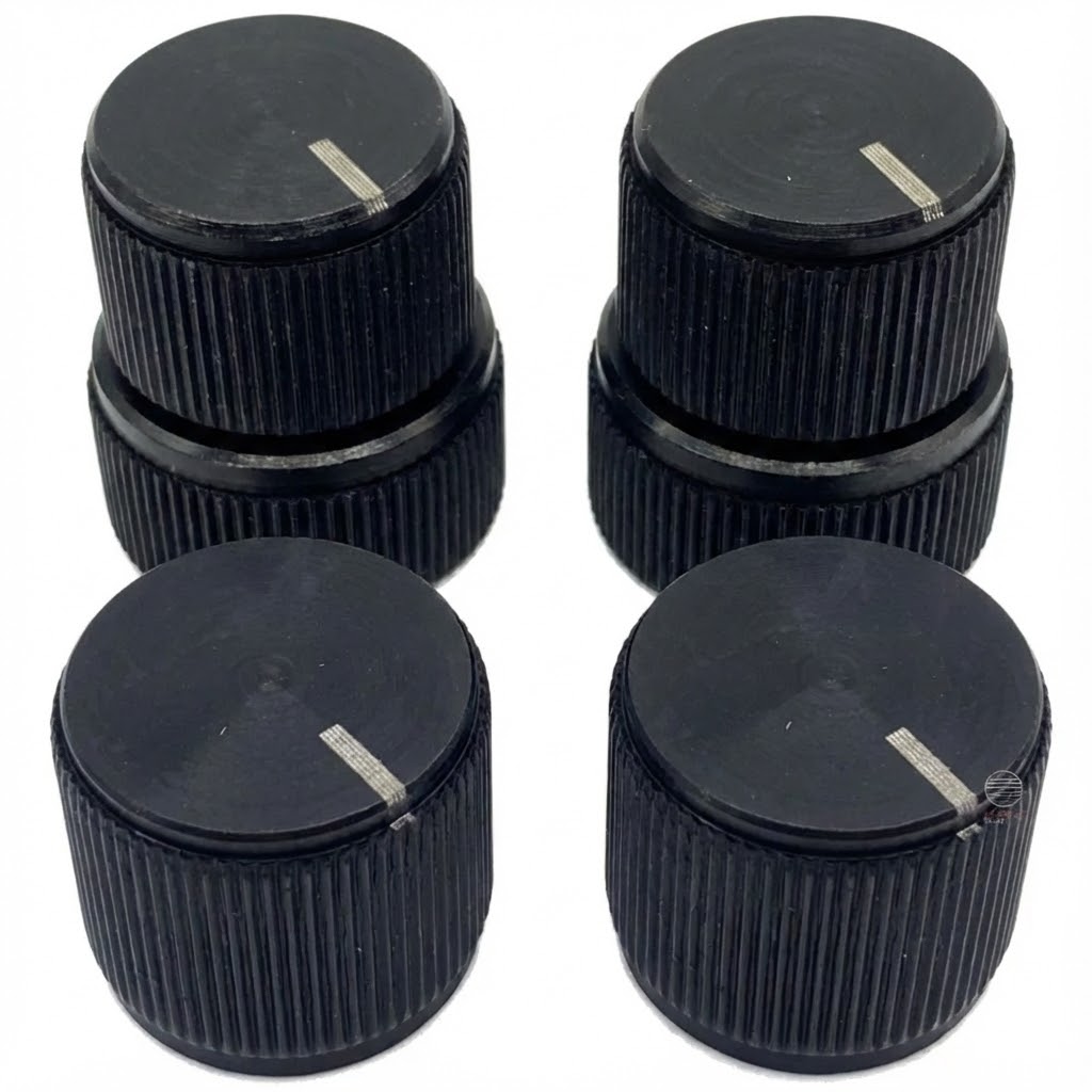 Kit com 2 Knobs 18mm + 2 Knobs Duplos em Alumínio para Baixo – Nova Parts (Cor: Preto 18mm)