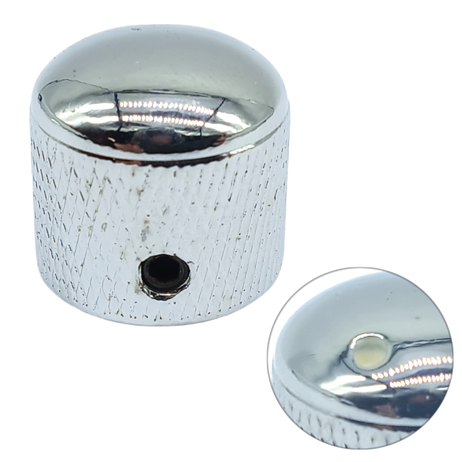 O knob MXP modelo KN032-DOME é fabricado em metal de alta qualidade, com acabamento cromado e indicador de bolinha, garantindo visual clássico e excelente leitura de posição durante o uso. Ideal para guitarras que exigem precisão, durabilidade e acabamento refinado.