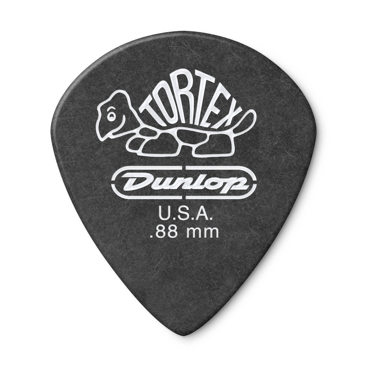 Palheta Dunlop Tortex Jazz III 0,88 mm modelo 482R na cor preta, com formato compacto e ponta aguda, proporcionando alta precisão e definição nos ataques.